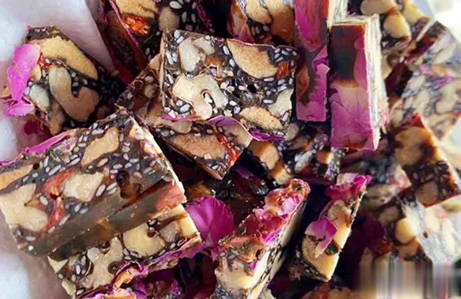 第二样:阿胶糕,除了吃海参,平时的零食也要以滋补为主,开始提到了阿胶,说到它,多数人都以为是女人吃的,其实男女都能吃。阿胶有补血的功效,古代都是宫廷贡品。用阿胶熬制的阿胶糕中含有核桃、枸杞、芝麻等坚果,