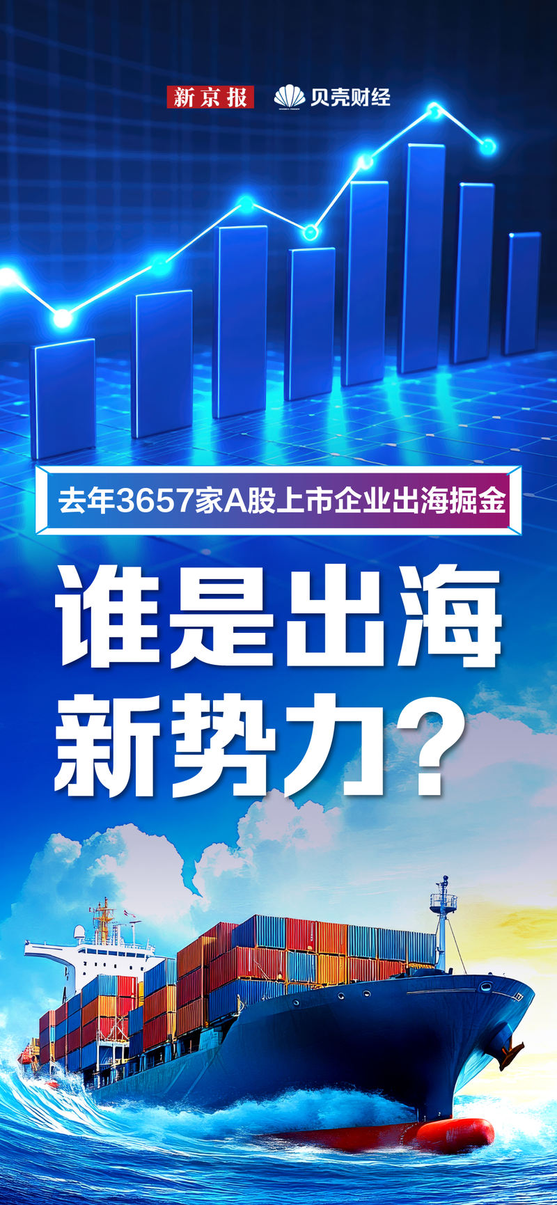 这一波出海浪潮中,哪些行业和企业走在前沿?哪些市场参与者成功实现弯道超车、绝处逢生?为挖掘近年来崛起的“出海新势力”,新京报贝壳财经记者整理分析2022-2024年A股上市公司的境外业务收入情况,筛选出近三年境外营收占比持续上涨且在近一年增长不低于10个百分点的176家上市公司,发现上市企业出海的新增长点与生命力。